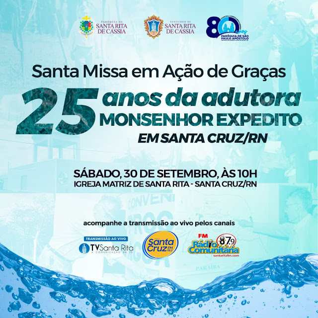 A celebração será neste sábado, 30 de setembro, data exata da inauguração, às 10h, na Igreja Matriz de Santa Rita de Cássia, no centro da cidade, na tradicional Missa do Agricultor, com transmissão pela Rádio Santa Cruz 98 FM, e nas plataformas digitais da TV Santa Rita (Santa Cruz), Paróquia de São Paulo Apóstolo (São Paulo do Potengi) e Arquidiocese de Natal.